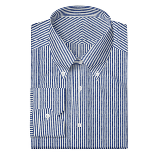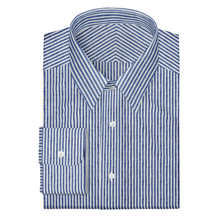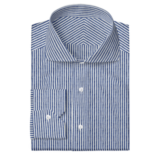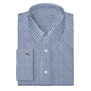 The Linen in Navy Blue Stripe  Decent Apparel Classic Spread Barrel